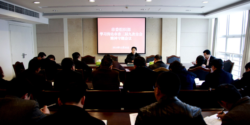 12月30日下午,市委组织部召开干部职工大会,专题传达学习贯彻市委三届九次全会精神。会上,市委组织部常务副部长张家生组织干部职工集中学习了市委李刚书记在全会上的两次讲话、市委“两个决定”和《全会公报》。
