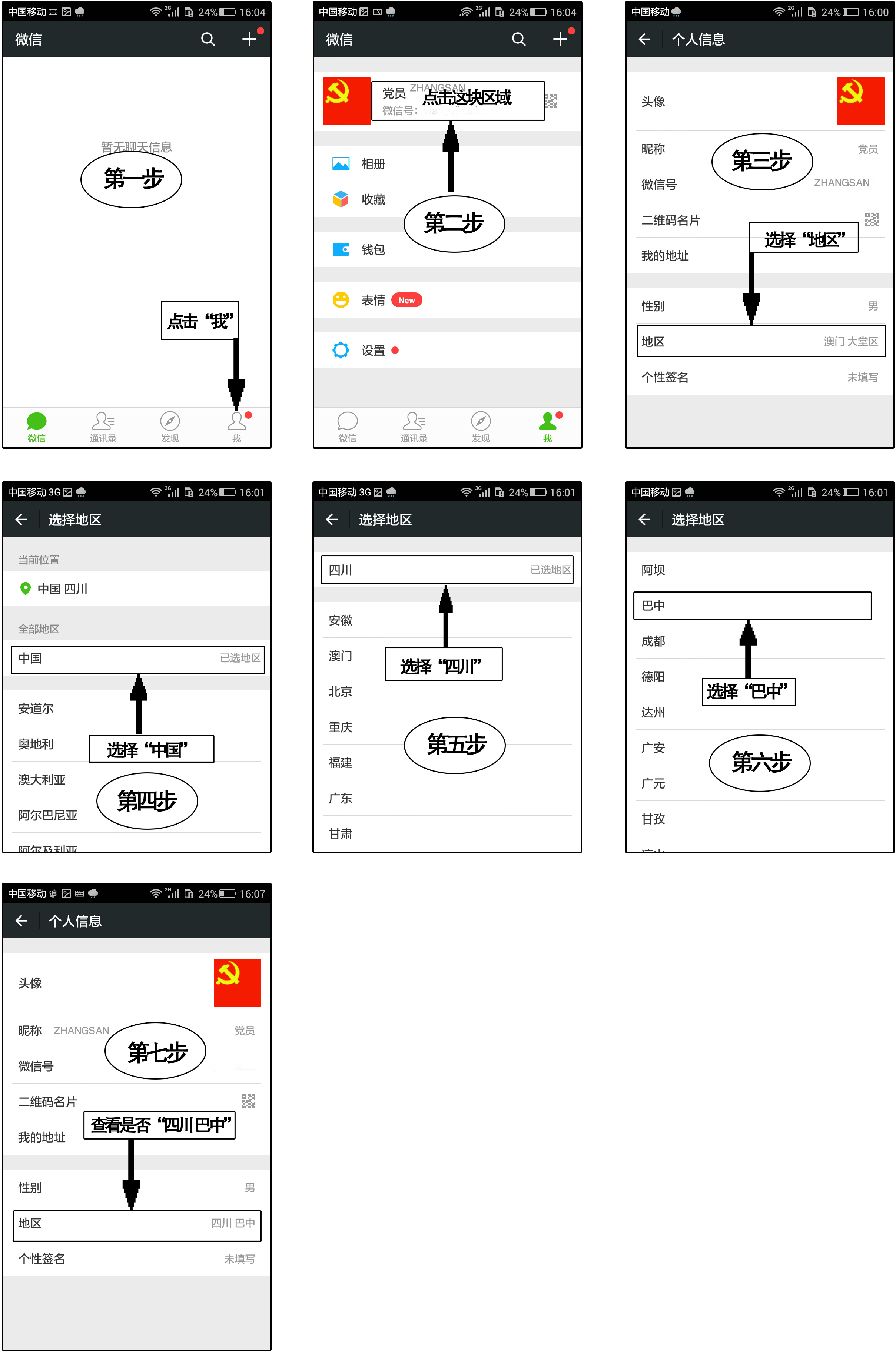各地各单位要认真借鉴“共产党员”微信易信订阅工作经验,积极抓好“天府先锋”微信订阅工作,原则上,使用智能手机的党政机关党员干部、企事业单位党员职工、基层党组织书记和入党积极分子,都必须订阅“天府先锋”微信,鼓励其他有条件的党员踊跃订阅。省委组织部将定期对各个市(州)订阅情况进行通报,为保证后台数据统计的准确性,各地各单位要确保各党员的手机微信地址为“四川巴中”,微信账号个人地区信息显示不是“四川巴中”的,应及时修改(方法见附件2)。
