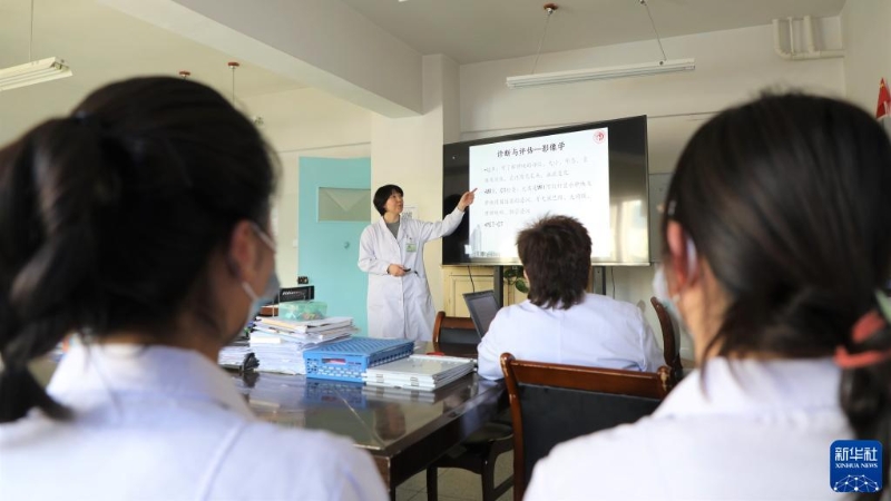 天津市中心妇产科医院妇产专业副主任医师饶阳为甘肃甘南藏族自治州人民医院妇产科的医生进行培训(1月15日摄)。新华社记者 张睿 摄