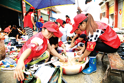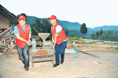 南江县党员志愿者为赤溪镇洪灾中损失严重的困难户整理家什。
