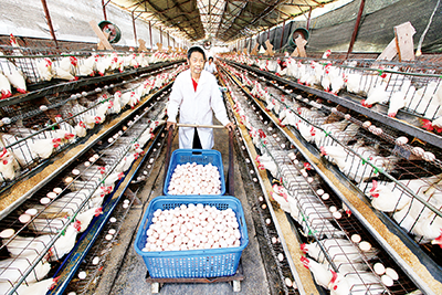 平昌县元山镇党员示范户带领贫困户发展巴山土鸡养殖。